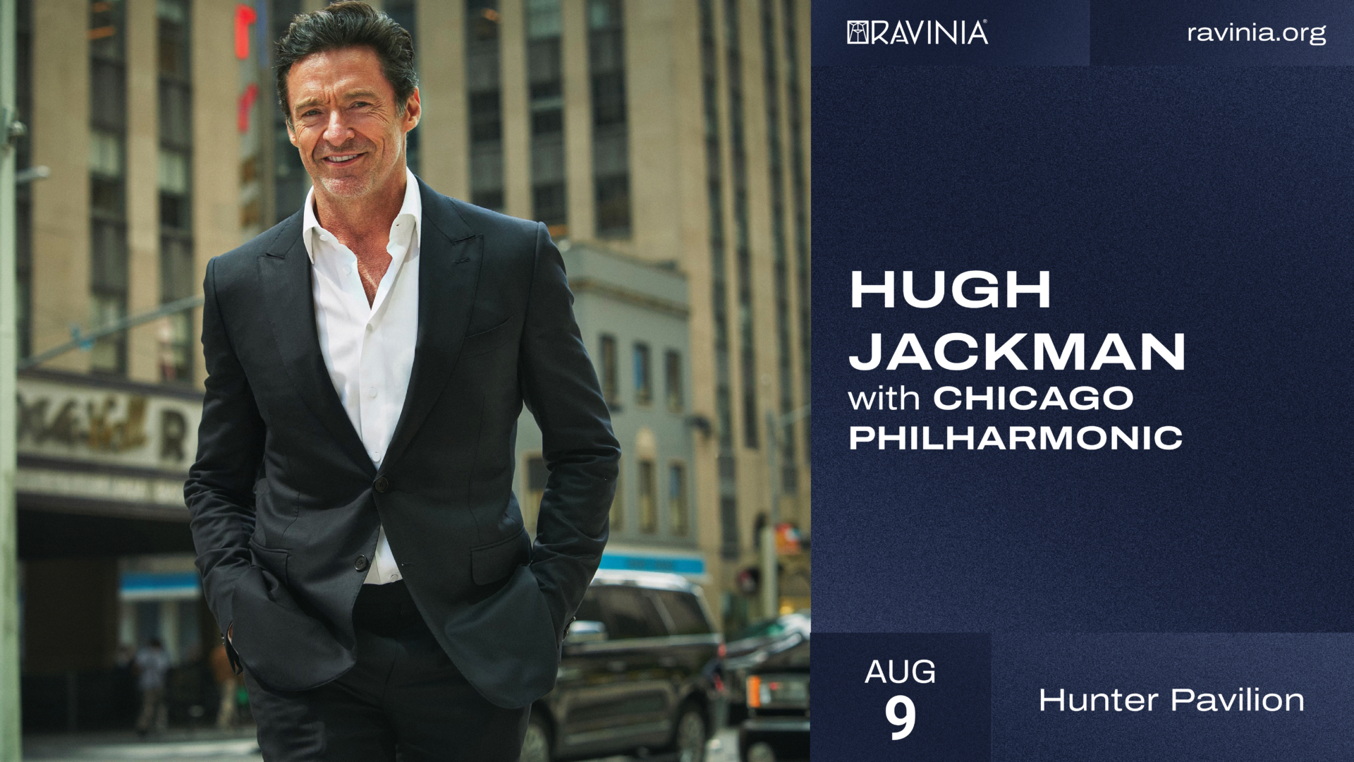 Praised by The Wall Street Journal as “one of the most gifted and multifaceted performers of our time,” Hugh Jackman makes his highly anticipated Ravinia debut this summer with the Chicago Philharmonic. A leading man of stage and screen, the Tony, Emmy, and Grammy Award winning performer promises an evening of “endless charm, energy, and charisma” (New York Stage Review).